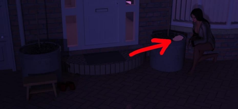 • The key is here, hard to see , top of the right planter.